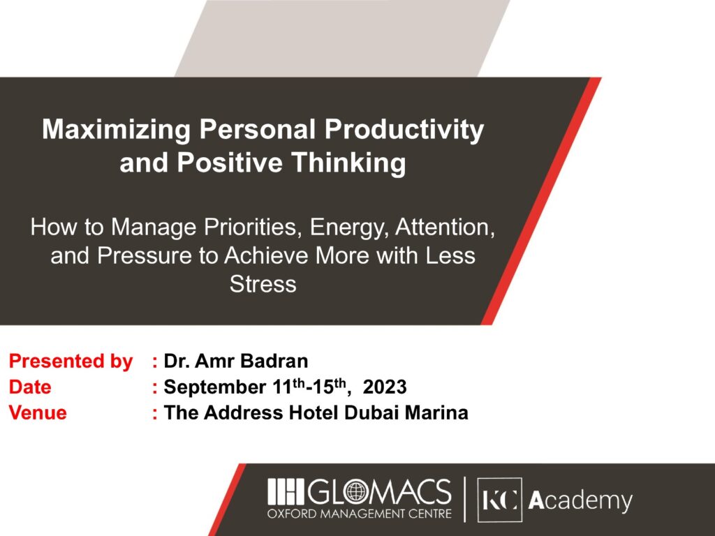 Maximizing Personal Productivity and Positive Thinking – Public Workshop